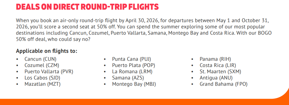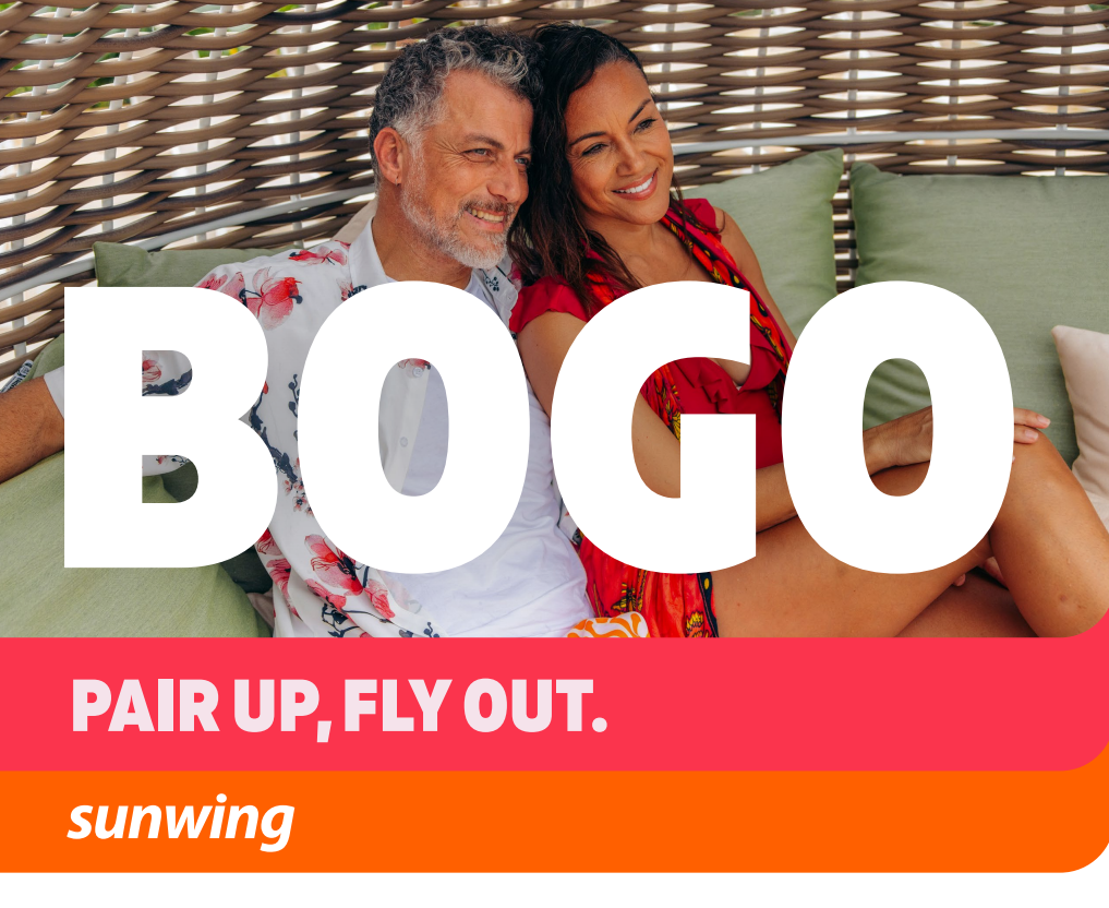 Right now with Sunwing, when you book a round-trip flight by April 30, you can bring someone along for 50% off their seat. Imagine summer in Cancun, Cozumel, Puerto Vallarta, Samaná, Montego Bay, or Costa Rica—all on direct flights, all within reach.
