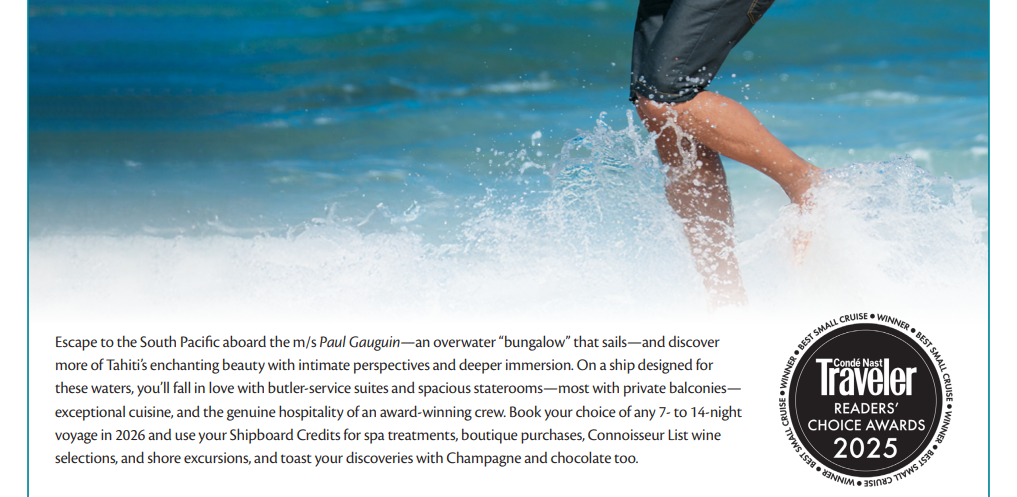Take Your Sweetie to Tahiti with Paul Gauguin Cruises